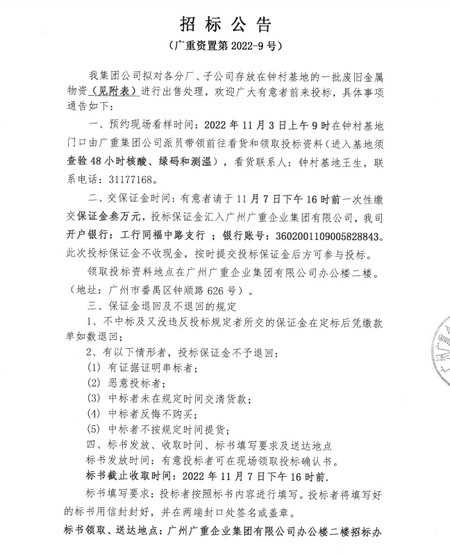 废旧金属物资处置(kaiyuan开元官方在线入口资置2022-9号)