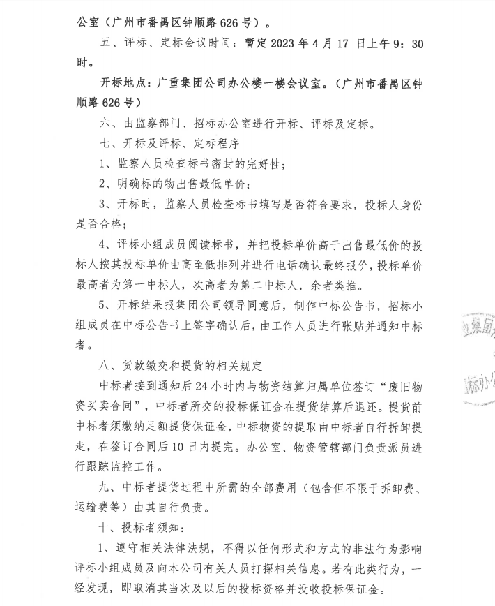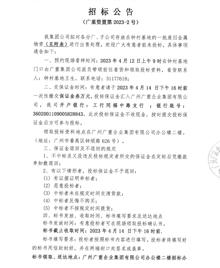 废旧金属物资处置(kaiyuan开元官方在线入口资置2023-2号)
