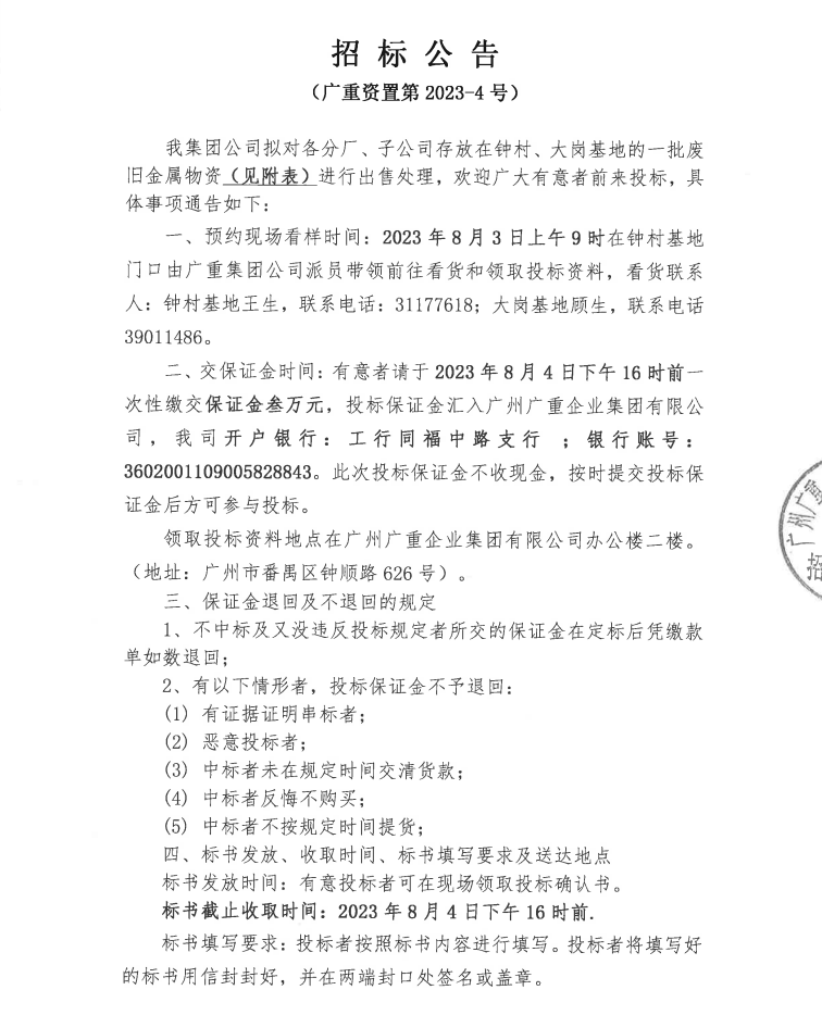 废旧金属物资处置(kaiyuan开元官方在线入口资置2023-4号)