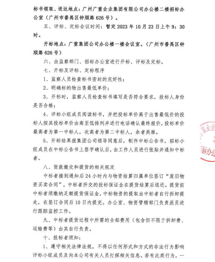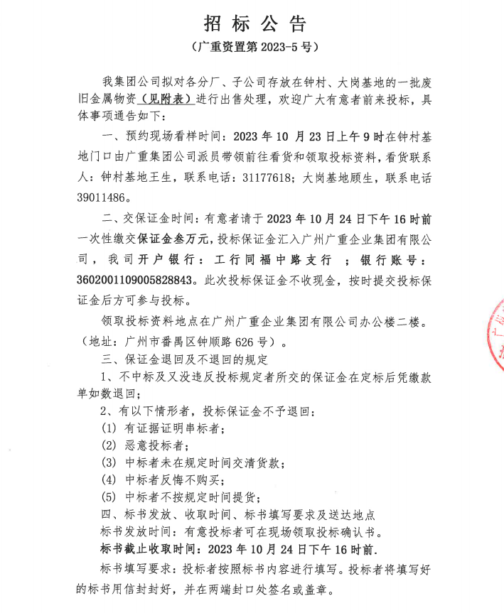 废旧金属物资处置(kaiyuan开元官方在线入口资置2023-5号)